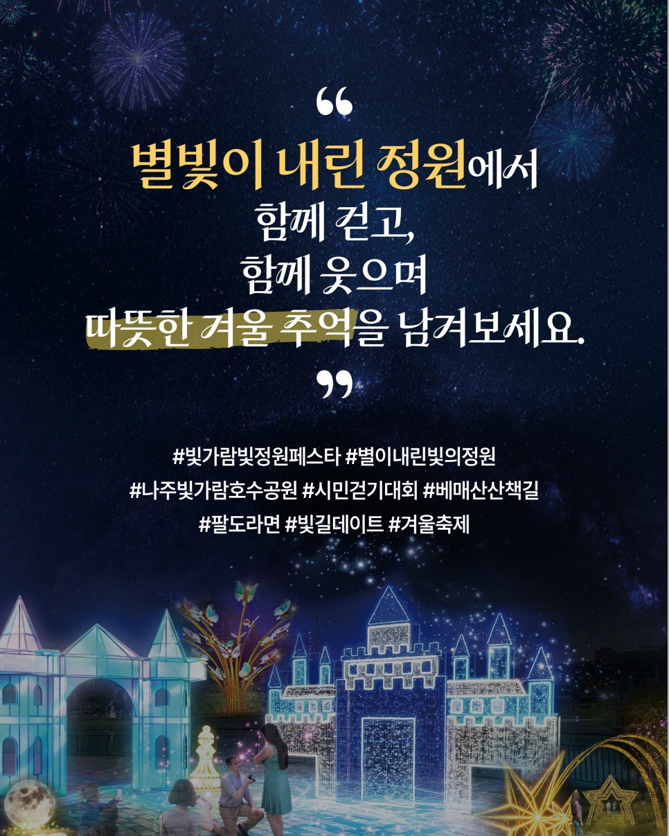 빛가람 빛 정원페스타는 나주의 겨울을 밝히는 빛이자, 지역 공동체의 온기를 나누는 축제입니다.